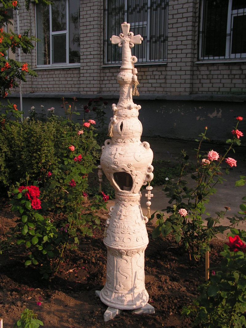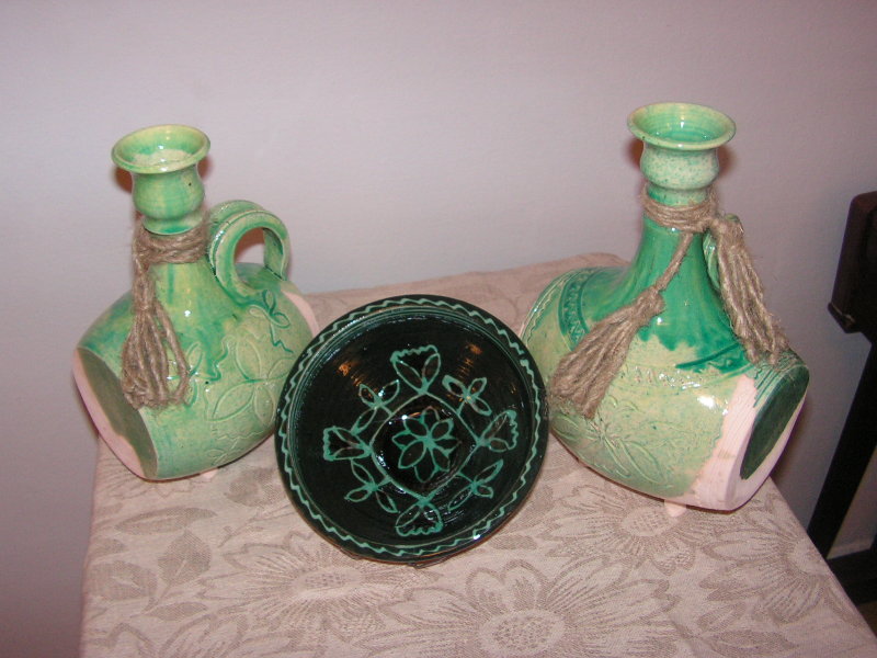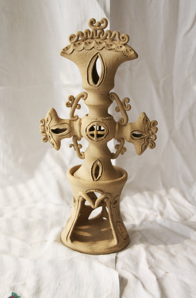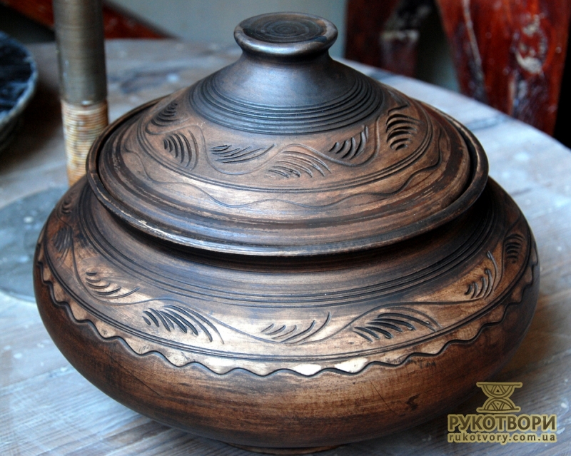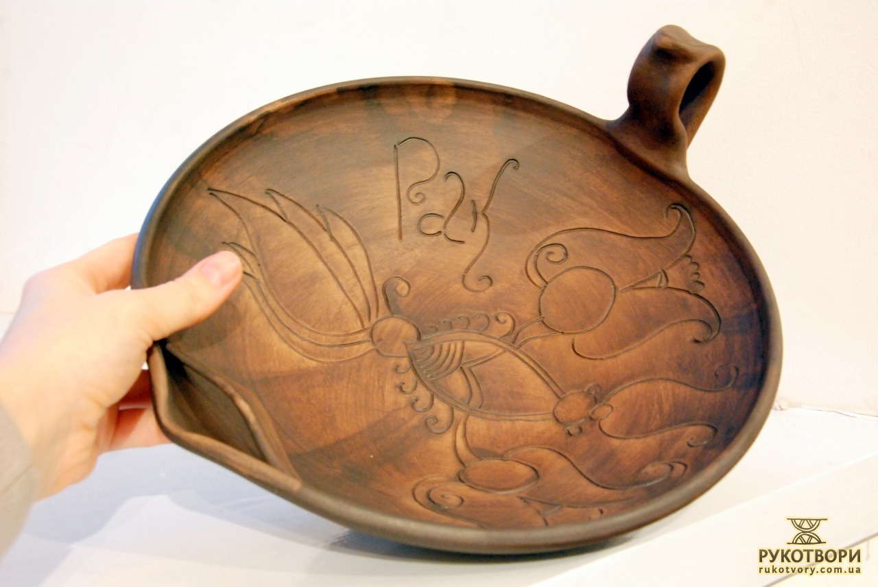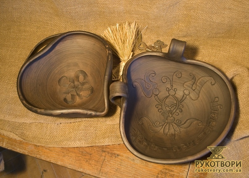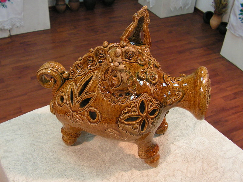 Practically all clay decorating and shaping techniques known in Ukrainian applied art are represented in the handiworks of this master. Here, there are figurative ornaments on plates; images of sacral symbols of Podillya pottery; creative search – variations of flyandrivka technique (national Ukrainian technique in majolica with paints applied on wet clay). Also, there is traditional decorative shaped sculpture including lembicks (decorative crockery having animal shapes), candlesticks and kurishky (small decorative chicken) – everything that represented Ukrainian national pottery at all times.