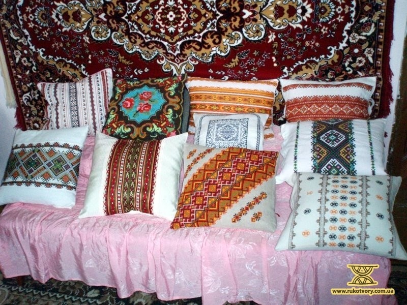At the dawn of her creative work the artist mastered such embroidering techniques as chain stitch, running stitch and gobelin stitch, catch stitch, satin stitch. Later she learned from her mother such techniques as cross-stitch, satin-stitch, closter-stitch. Mariah also embroiders using other techniques – counted satin-stitch, tapestry seam, “nightingale eyes” (combination of four small squares made in counted satin-stitch with a tiny opening in the center) and different kinds of open-work. Currently, the master has a lot of embroidered tea-cloths, runners, pillow-cases, curtains and table-cloths among her handiworks among her handiworks.