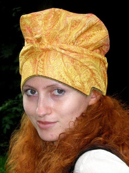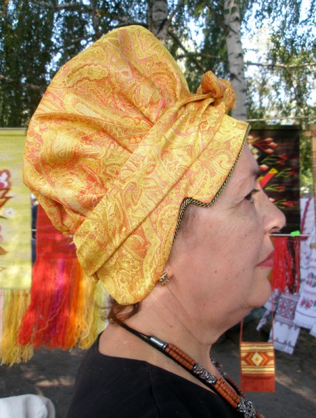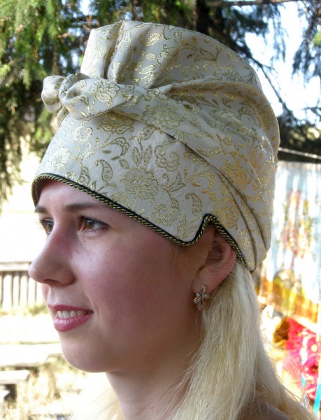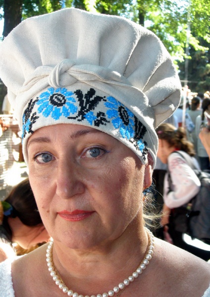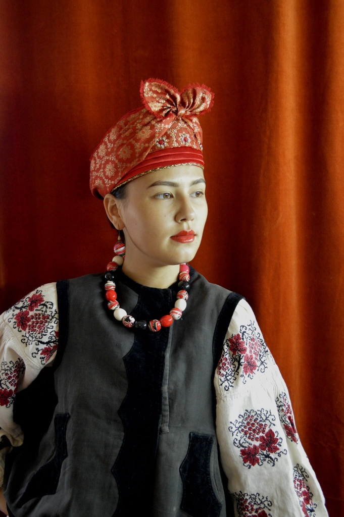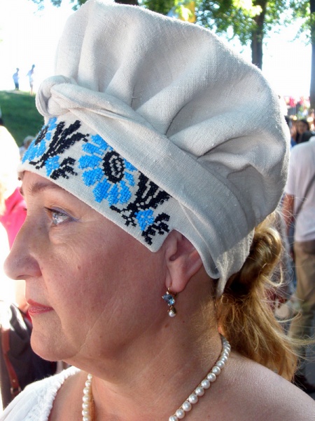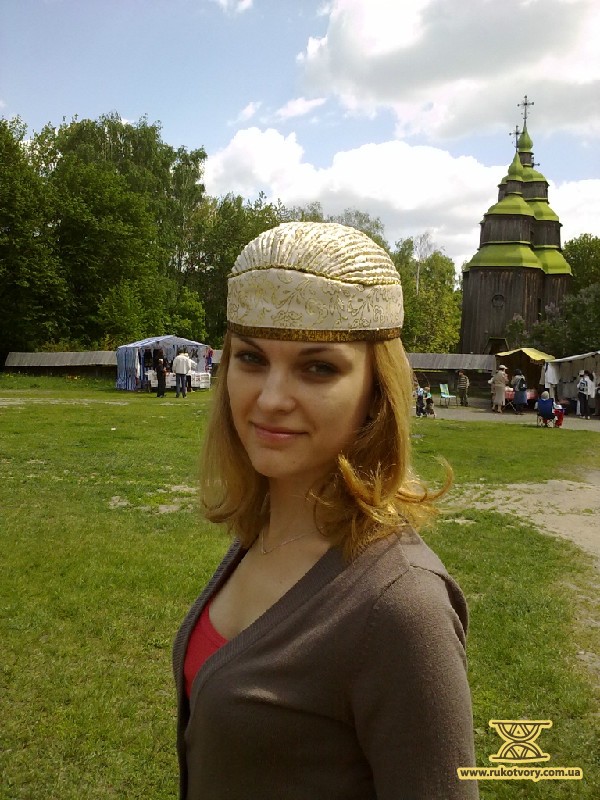 Ochipok is an ancient head-dress of a married woman in the shape of a cap (often with a vertical slit at the back) laced up tightening the hair hidden under it.