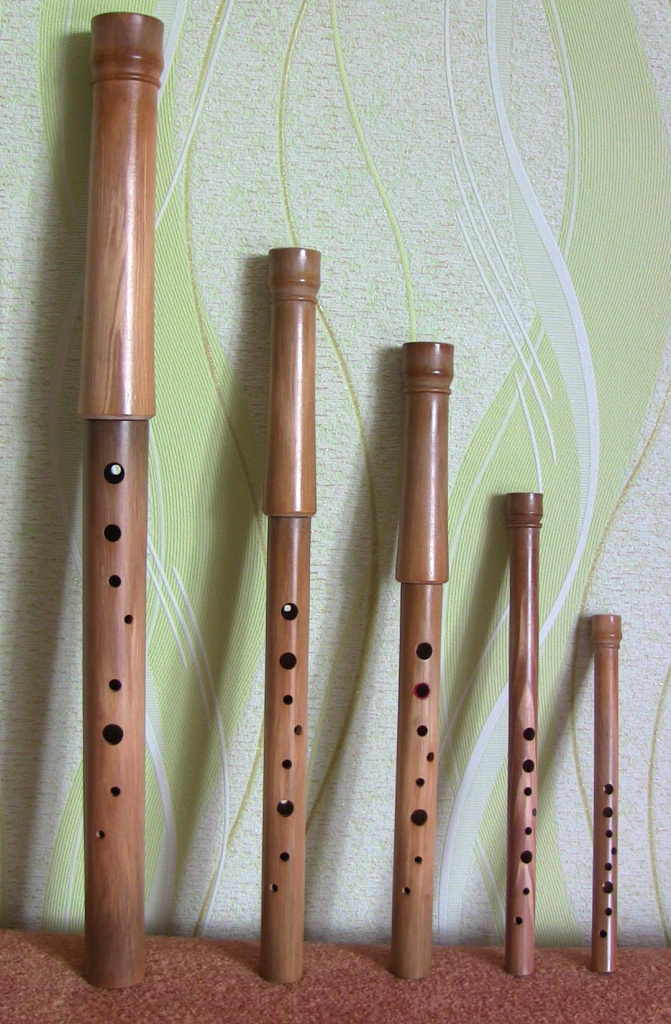 The master manufactures quite a range of different pipes: dentsivkas (flutes with bottoms, diatonic and chromatic); alto, tenor, bass pipes; dzholomygas (double dentsivkas); telenkas (open flutes). For manufacture of his favorite instruments the master uses practically every kind of wood. He sometimes makes even oak and birch pipes though most of all he likes pear, guelder rose and horn-beam.