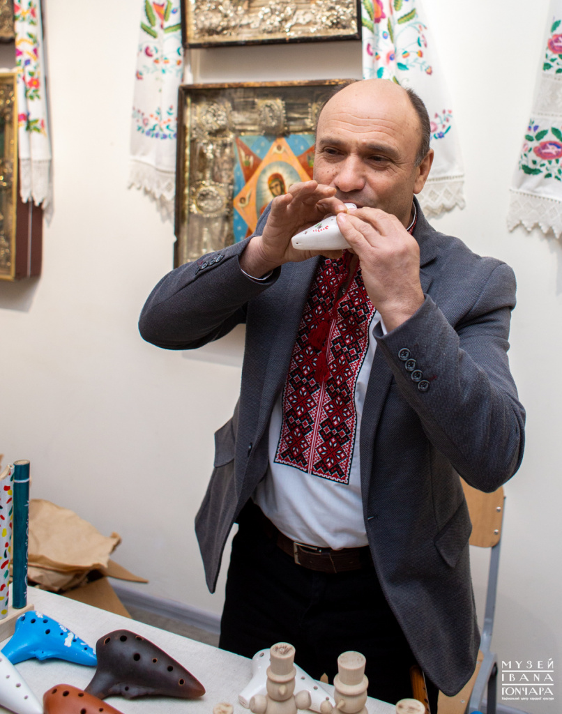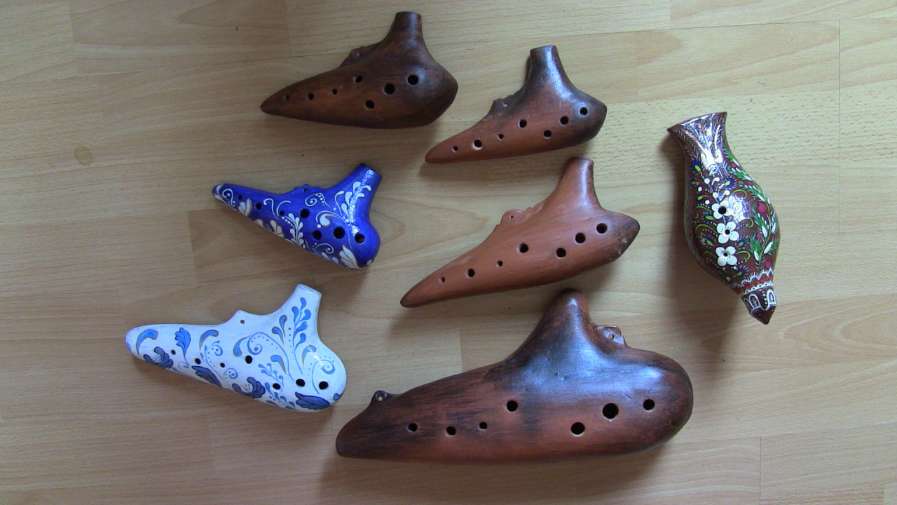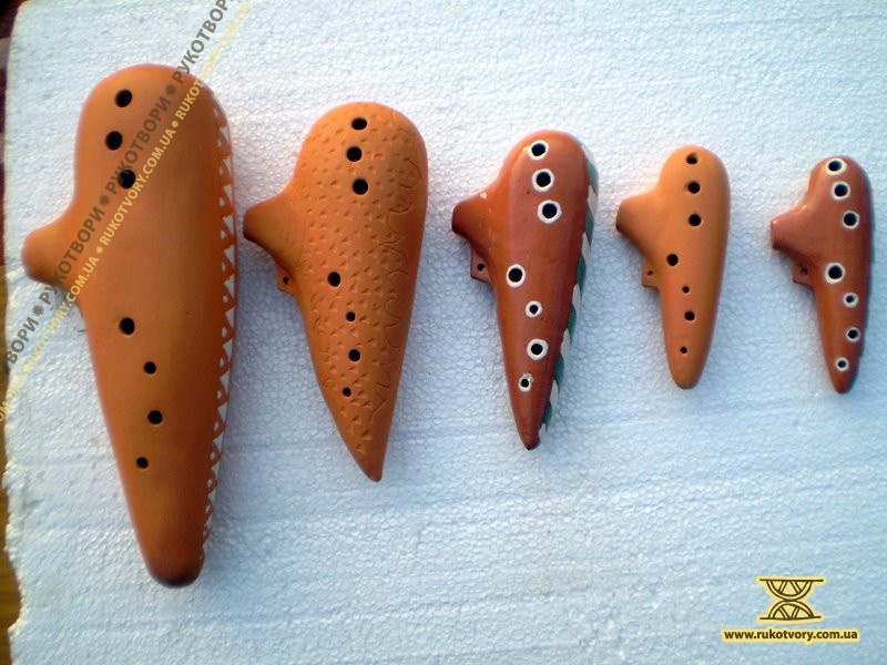 Besides wooden instruments Volodymyr also makes a range of clay (ceramic) instruments which are called “ocarynas” (more widespread name in Ukraine is “a cuckoo”): piccolo ocaryna, tonic ocaryna, alto ocaryna, tenor ocaryna, and bass ocaryna.