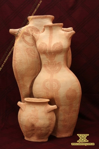 This artist – ceramist has a very wide range of themes for her creations starting from whistles to the garden sculptures. She loves traditions of different nations and times: Crete-Mycenaean, Trypillya and cultures of South American, African and Asian peoples.