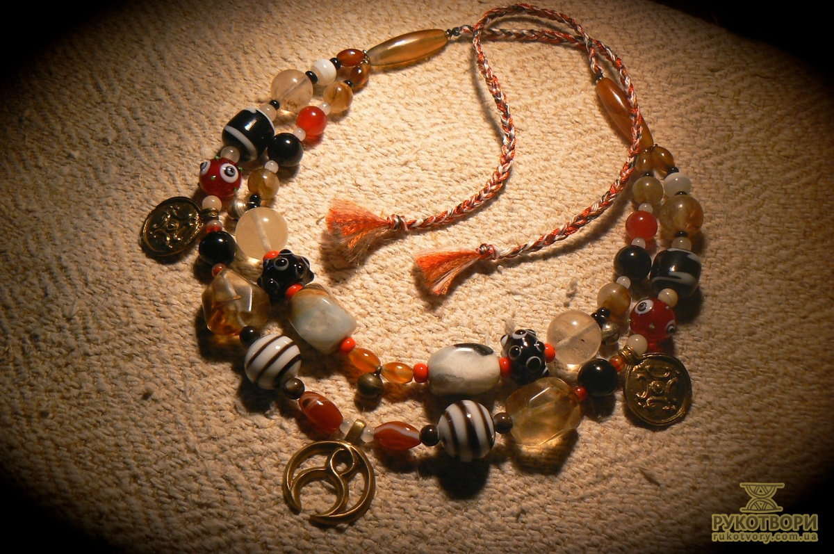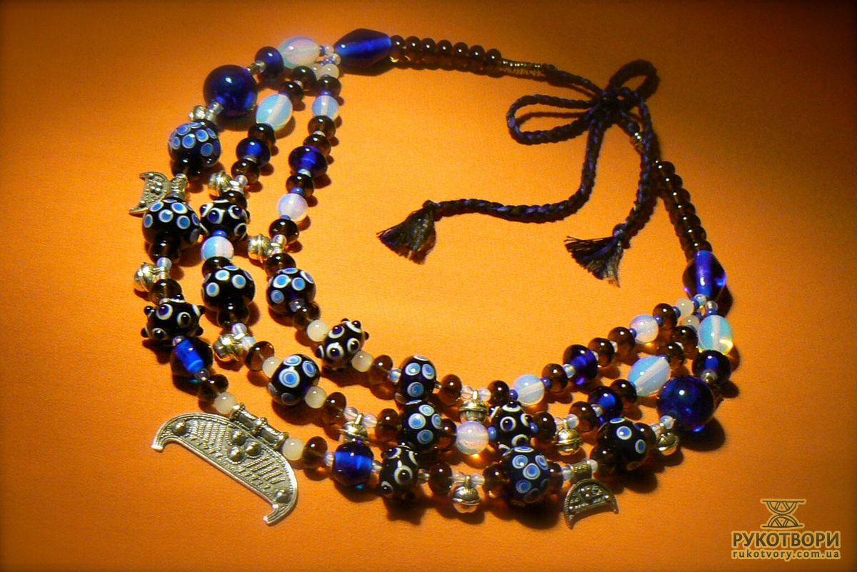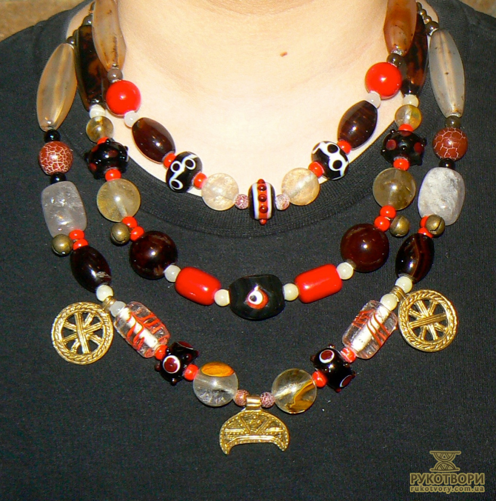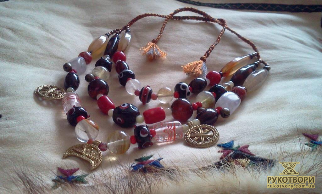 “Народження мого намиста почалося із захоплення історичною реконструкцією у 2005 році. Спочатку для свого костюму жінки вікінга Х століття мені треба було виготовити намисто, почала вивчати питання давнього намиста – конструкції і матеріали. З того часу натуральне каміння, ручне скло, метал є моїми основними елементами у роботі.