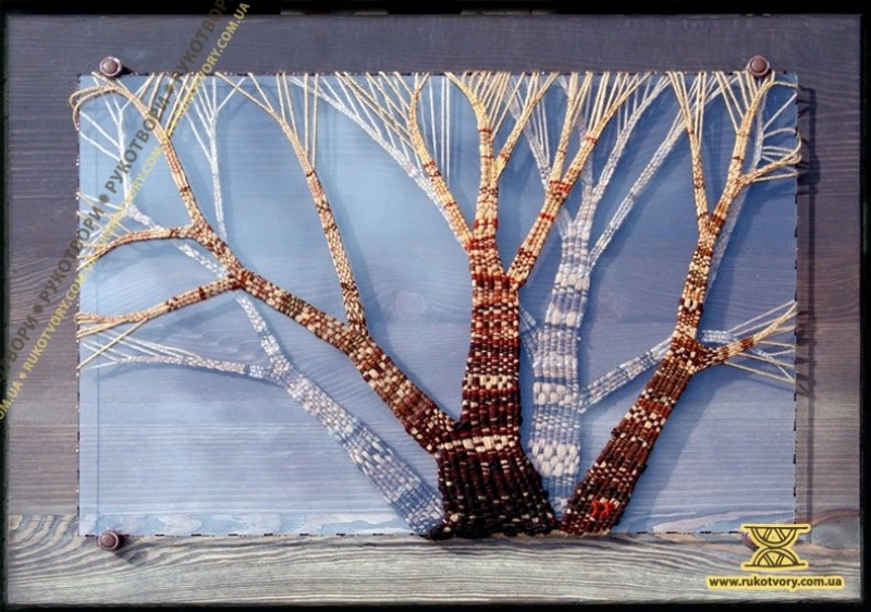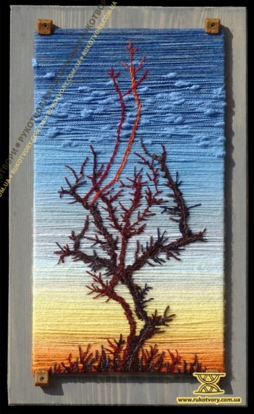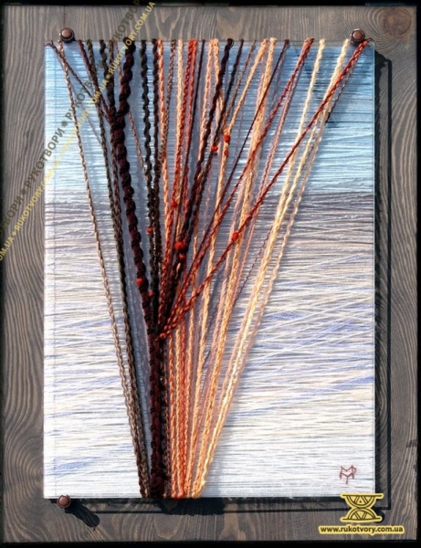 Творчість для Мирослави – це постійний пошук. Пошук сенсу і змісту, пошук можливостей їх вираження в творах, пошук несподіваних ефектів і вражень у способах і техніках виконання. Ось як художниця експериментувала з нитками і склом: