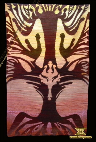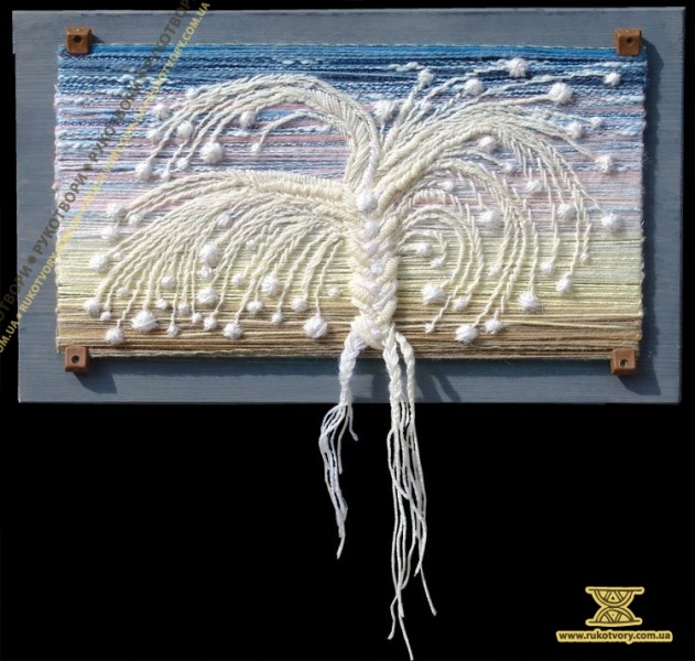 – В якийсь момент в процесі роботи мені захотілось підкреслити властивості ткацтва (м’якість, текстильність) контрастними якостями скла (прозорістю, холодним блиском). Результатом цих експериментів стала серія робіт, виконаних нетрадиційним способом. Характерним є те, що ажурне ткацтво виконується з обох сторін скла, залишаючи деякі площини скла незаповненими і це надає твору враження просторової перспективи.