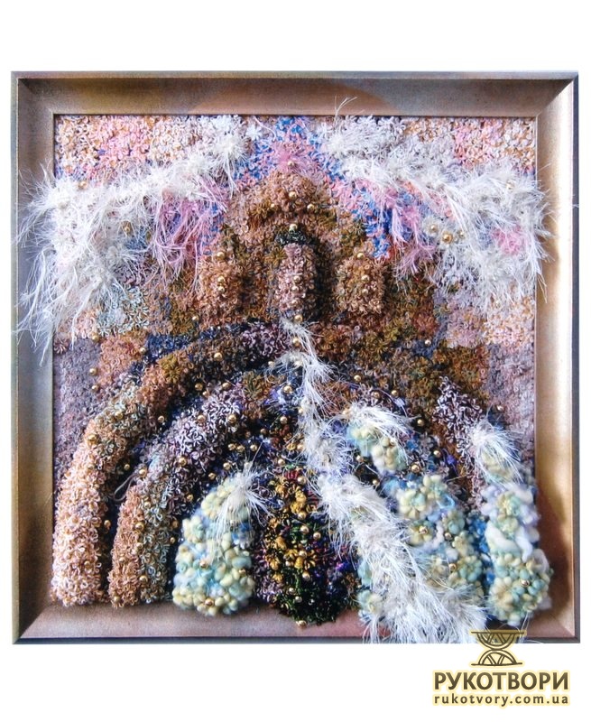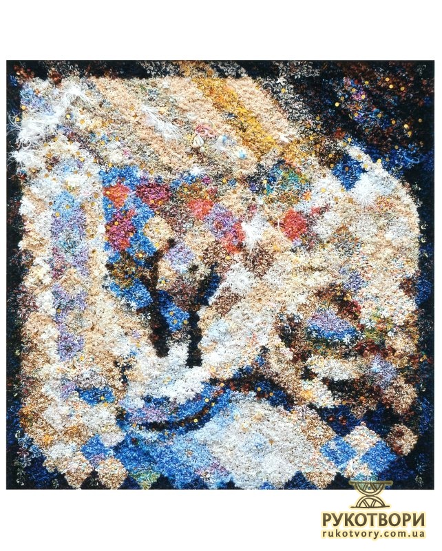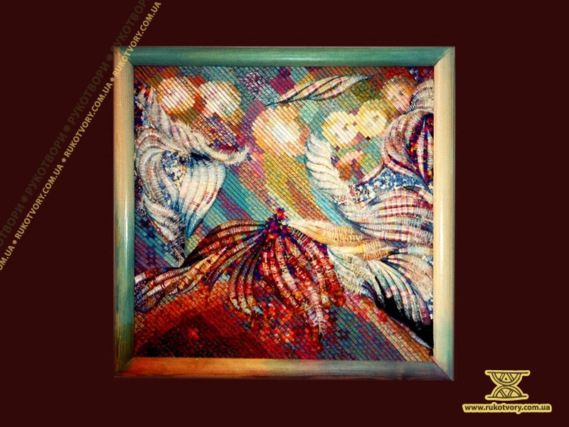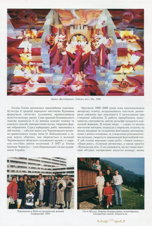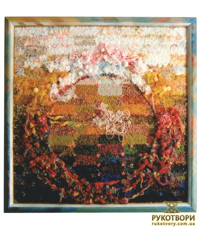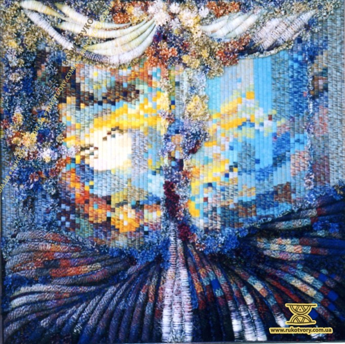 “Хотілося робити щось неординарне, інше, — каже Олена Іванівна, пригадуючи, свою першу «картинку». — Великі традиційні гобелени — то досить довго, а тут думка якась майне, народиться ідея, образ — хочеться швидше зробити. А як? Квартира маленька, живемо в готелі, верстат не поставиш — він займе всю кімнату”.