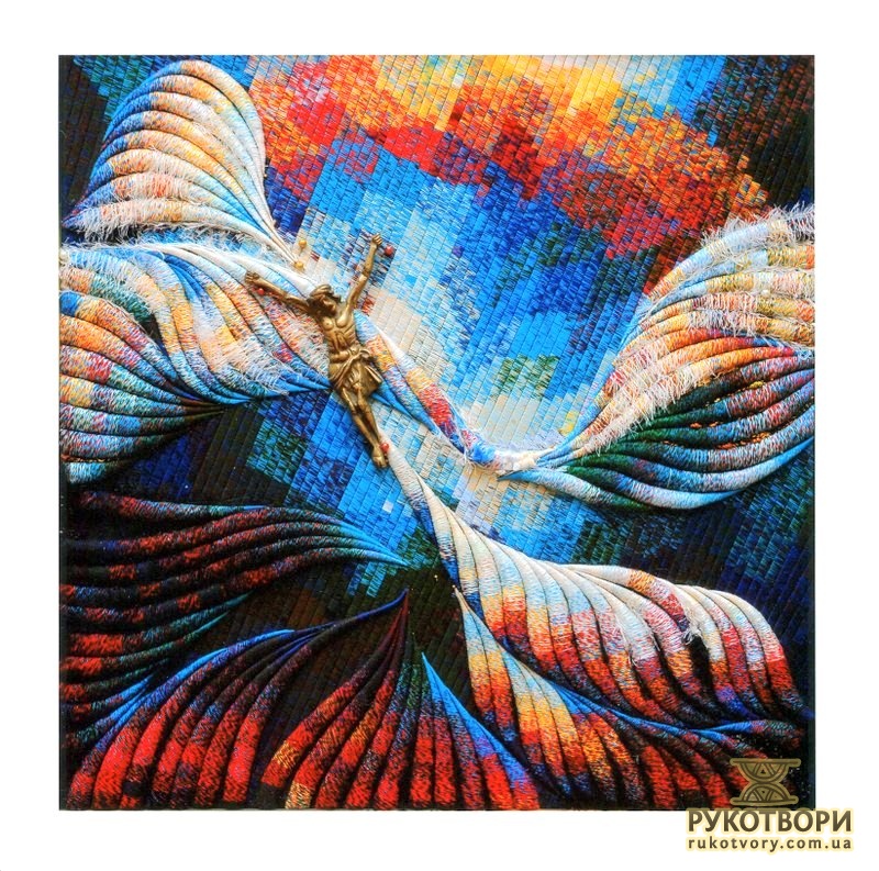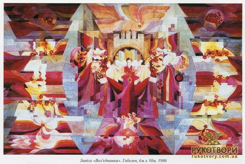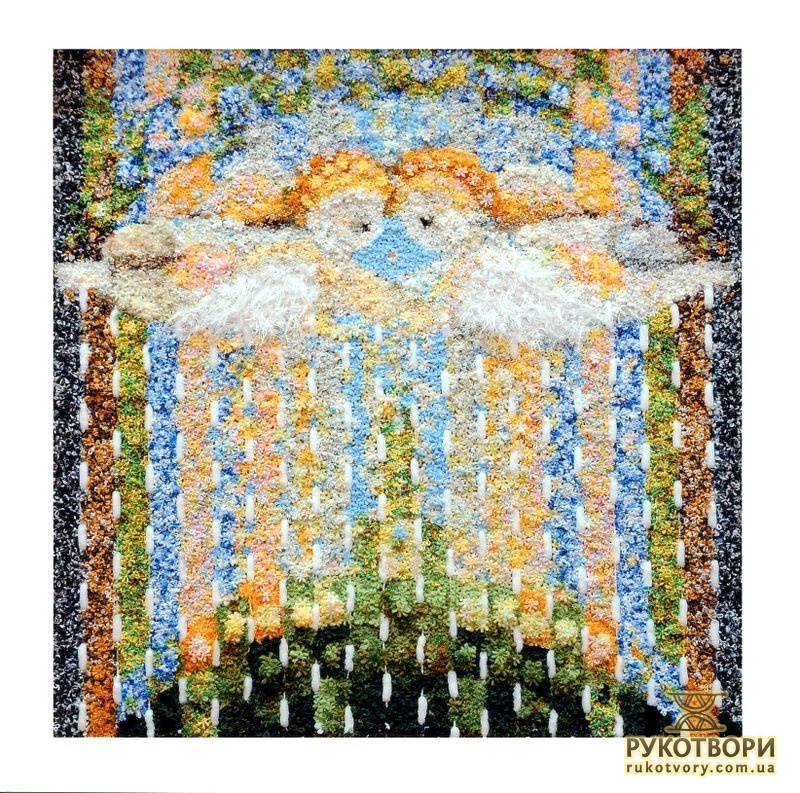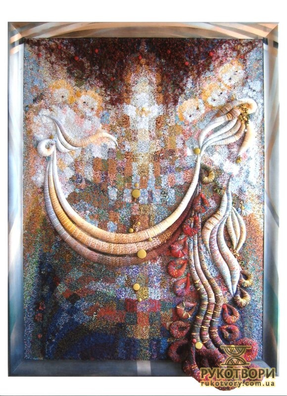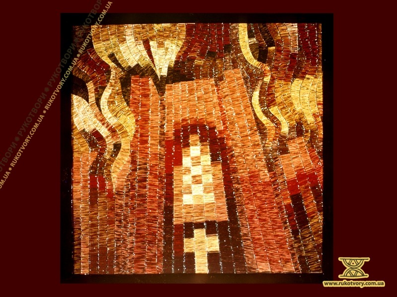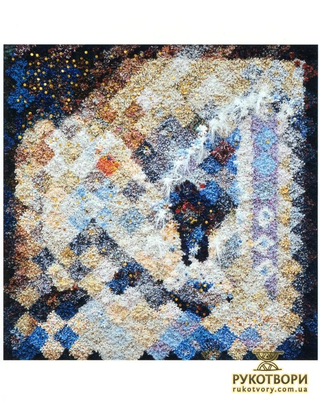 “Хотілося робити щось неординарне, інше, — каже Олена Іванівна, пригадуючи, свою першу «картинку». — Великі традиційні гобелени — то досить довго, а тут думка якась майне, народиться ідея, образ — хочеться швидше зробити. А як? Квартира маленька, живемо в готелі, верстат не поставиш — він займе всю кімнату”.