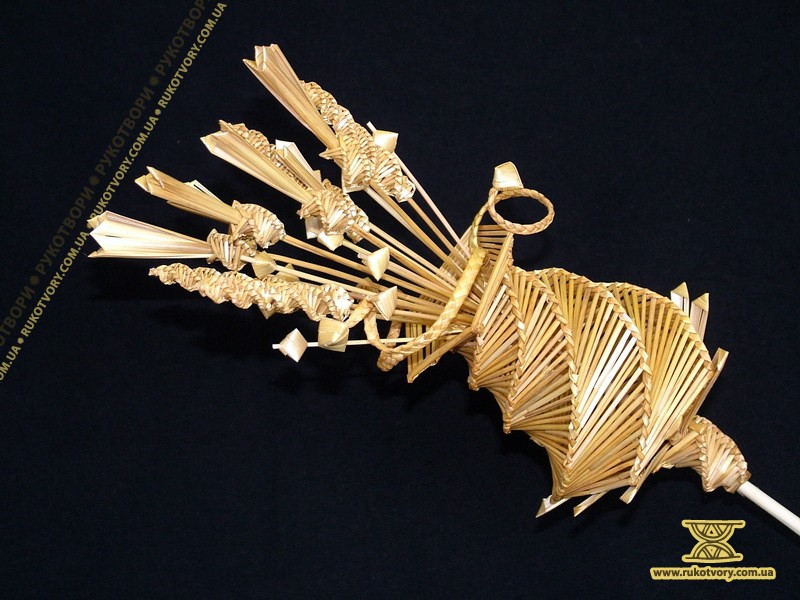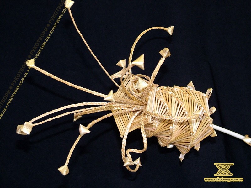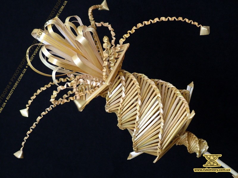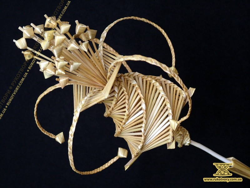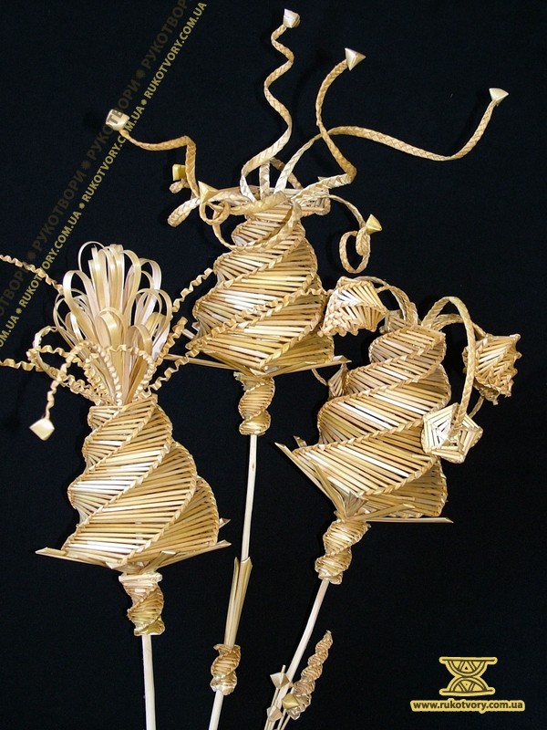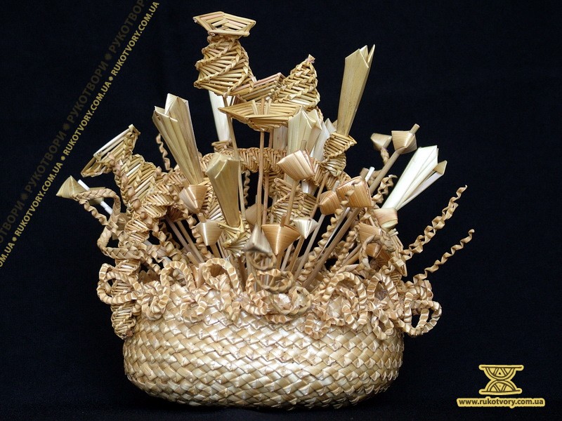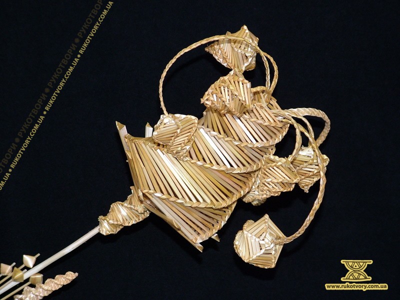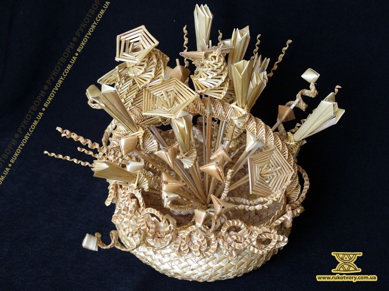 Із житньої та пшеничної соломки мисткиня “вирощує” квіти, деталі підглядає у природи, а довершує форму уявою. Також з соломи творить скрині, панно, а кілька років тому робила ялинкові прикраси, цукерниці, хлібниці та різної величини ємкості.