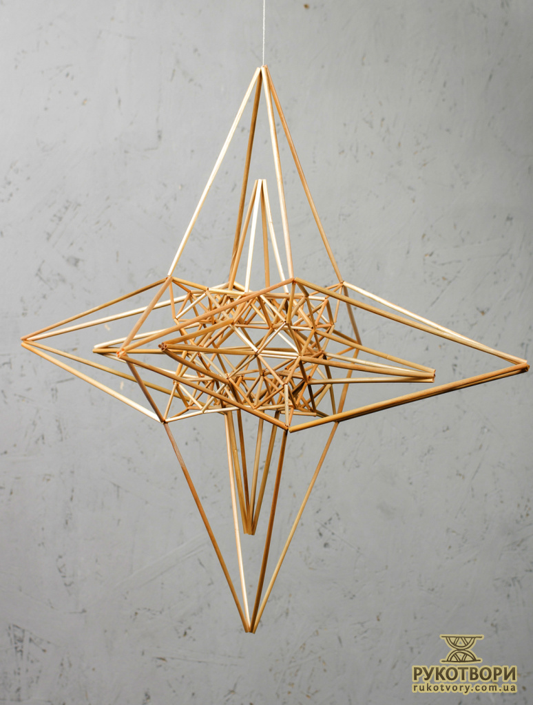 Художниця глибоко вивчає та творить із соломи конструкції традиційних “павуків”. Каже, постійно рухаючись у підвішеному до стелі стані, вони гармонізують простір та вбирають у себе негативну енергію.